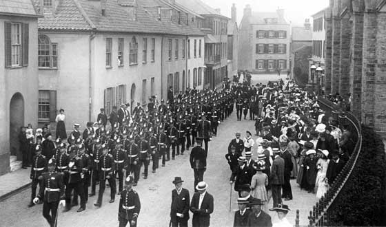 2nd Battalion on Parade, St. Helier, Jersey, 1910. The group of