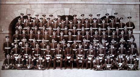 'H' Company, 2nd Battalion, King's Own, Jersey, 1910. The officer in
