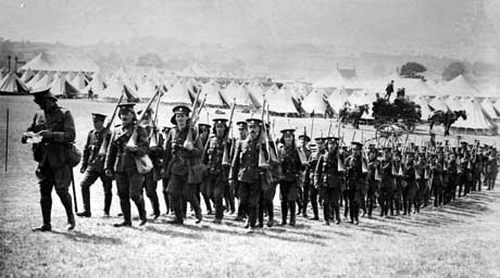 1910, troops heading off on a march for either the day's exercise