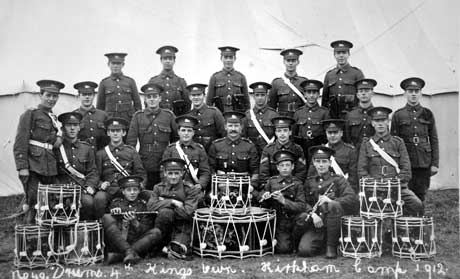Drums of the 4th Battalion at Kirkham Camp, Lancashire, 1912.