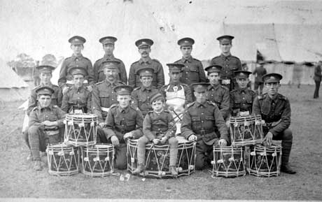 The Corps of Drums of the 4th Battalion, King's Own, at an un-identified