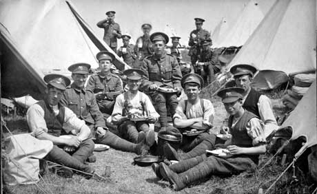 Dinner time at an un-dated camp of the 4th Battalion, King's Own