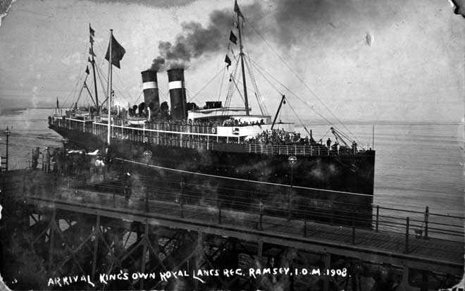 Arrival of the King's Own Royal Regiment, Ramsey, Isle of Man, 1908.