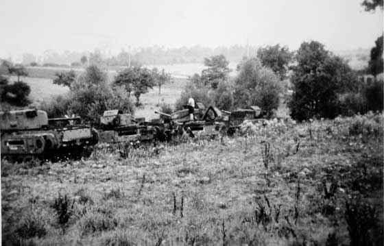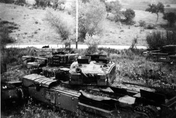Knocked out Churchill tanks of the 107th Regiment Royal Armoured Corps