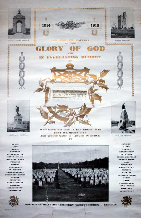 Ulverston. Commemorated on the Menin Gate Memorial, Ypres.