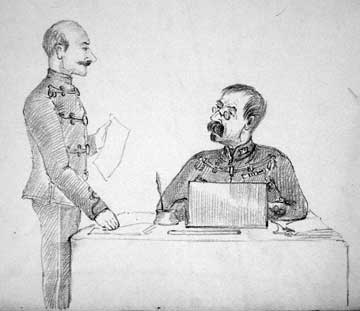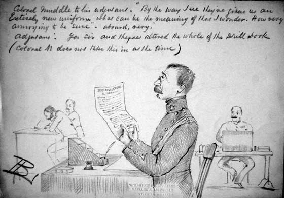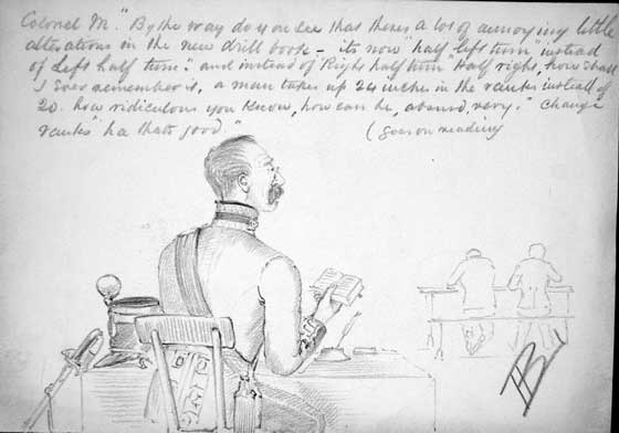 Collections - Drawings The work of Henry Buckton Laurence (1842-1886) The Colonel and the Adjutant and the new Dress Regulations & Drill Book.