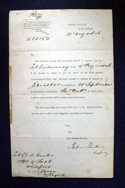 Archive of General Sir Archibald Hunter GCB GCVO DSO TD LLD at the King's Own Royal Regiment Museum, Lancaster. From Adjutant General, Horse Guards, War Office, 30 August 1875 KO2686/004