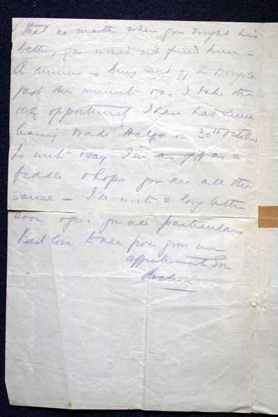 Archive of General Sir Archibald Hunter GCB GCVO DSO TD LLD at the King's Own Royal Regiment Museum, Lancaster. With the Egyptian Army Hand-written letter from Captain A