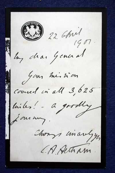 Archive of General Sir Archibald Hunter GCB GCVO DSO TD LLD at the King's Own Royal Regiment Museum, Lancaster. Mission to announce the accession of King Edward VII Letter dated 22 Apr 1901 to Hunter from ? Accession Number: KO2686/028 |