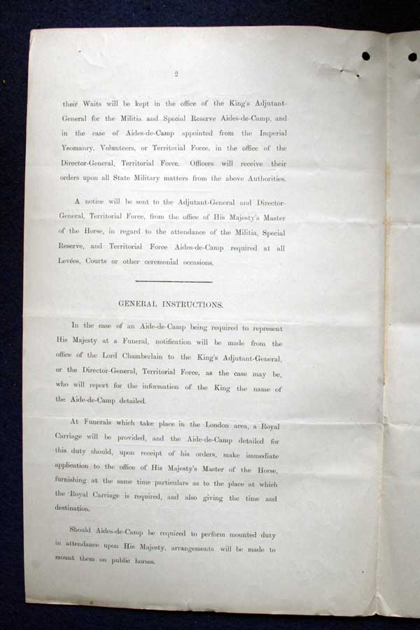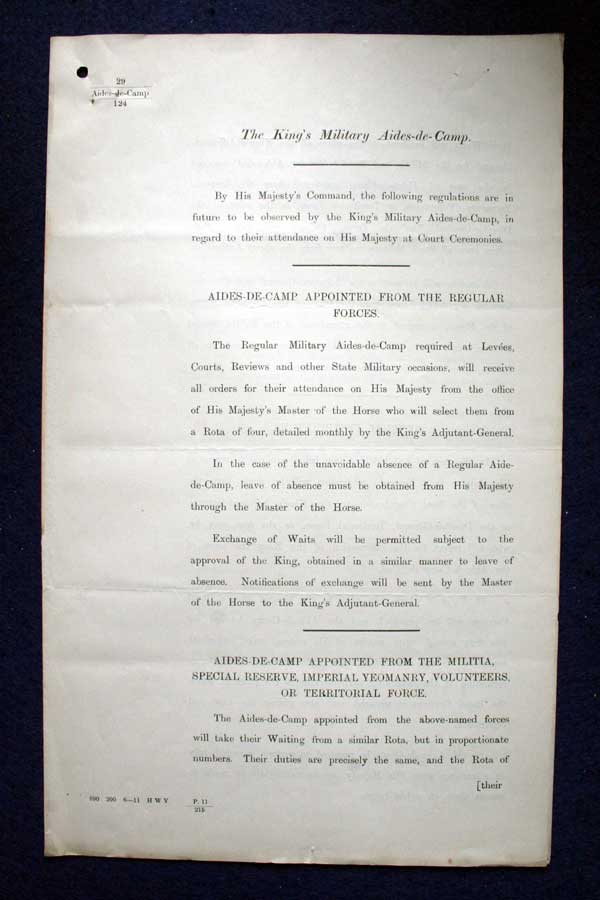Archive of General Sir Archibald Hunter GCB GCVO DSO TD LLD at the King's Own Royal Regiment Museum, Lancaster. Aides de Camp to HM King Printed notice relating to