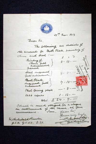 of arms and seal for Sir Archibald Hunter, dated 25 Jan 1913 |