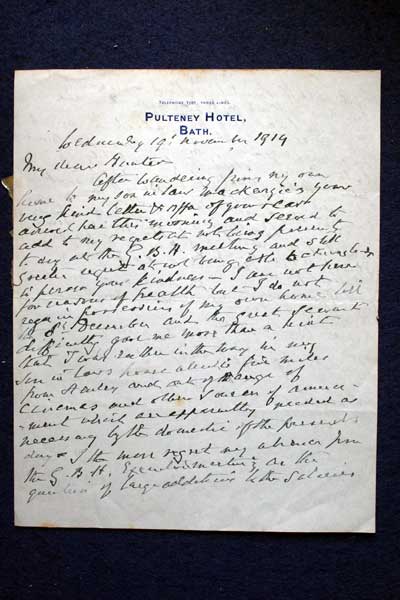Archive of General Sir Archibald Hunter GCB GCVO DSO TD LLD at the King's Own Royal Regiment Museum, Lancaster. Letter to Hunter from General Sir George Wentworth Higginson, dated 19 Nov 1919 Accession Number: KO2686/075