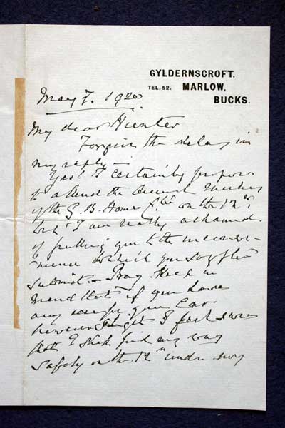 Archive of General Sir Archibald Hunter GCB GCVO DSO TD LLD at the King's Own Royal Regiment Museum, Lancaster. Letter to Hunter from General Sir George Wentworth Higginson, dated 7 May 1920 Accession Number: KO2686/078