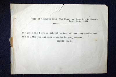 from the King to General Sir Archibald Hunter dated 1 Dec 1924. “The