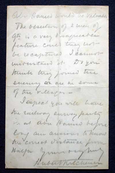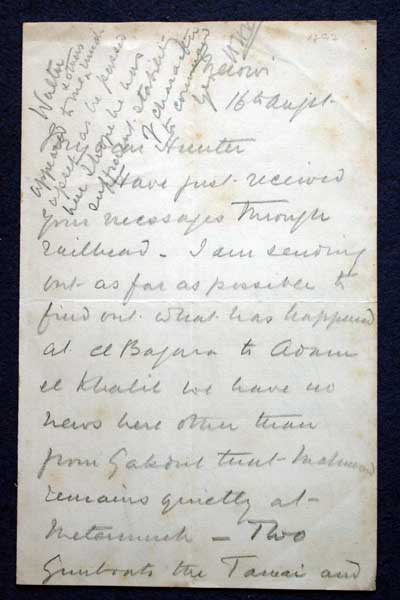 Archive of General Sir Archibald Hunter GCB GCVO DSO TD LLD at the King's Own Royal Regiment Museum, Lancaster. Letter to Hunter from Kitchener, dated 16 Aug 1897 KO2686/092