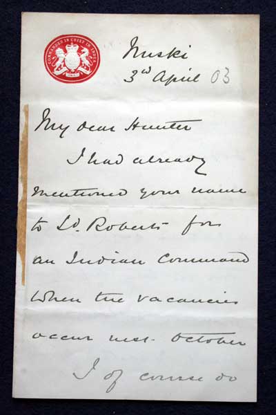 Archive of General Sir Archibald Hunter GCB GCVO DSO TD LLD at the King's Own Royal Regiment Museum, Lancaster. Letter to Hunter from Kitchener, dated 3 Apr 1903 KO2686-094 |