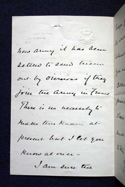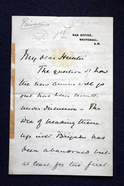 Archive of General Sir Archibald Hunter GCB GCVO DSO TD LLD at the King's Own Royal Regiment Museum, Lancaster. Letter to Hunter from Kitchener, dated 1 Apr 1915