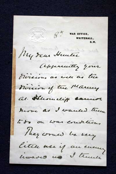Archive of General Sir Archibald Hunter GCB GCVO DSO TD LLD at the King's Own Royal Regiment Museum, Lancaster. Letter to Hunter from Kitchener, dated only ‘8th’ probably 8 Feb 1915