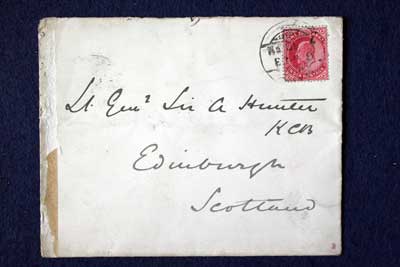 Archive of General Sir Archibald Hunter GCB GCVO DSO TD LLD at the King's Own Royal Regiment Museum, Lancaster. Envelope Envelope addressed to Lieutenant General Sir A Hunter,
