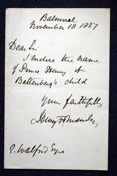 Archive of General Sir Archibald Hunter GCB GCVO DSO TD LLD at the King's Own Royal Regiment Museum, Lancaster. Royal Household Correspondence Letter dated 10 Nov 1887 from Balmoral. Accession Number: KO2686/127 |