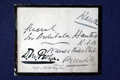 Archive of General Sir Archibald Hunter GCB GCVO DSO TD LLD at the King's Own Royal Regiment Museum, Lancaster. Envelope Envelope addressed to Hunter, Naval and Military Club,