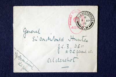 Archive of General Sir Archibald Hunter GCB GCVO DSO TD LLD at the King's Own Royal Regiment Museum, Lancaster. Envelope Envelope addressed to Hunter, Aldershot, postmarked 1