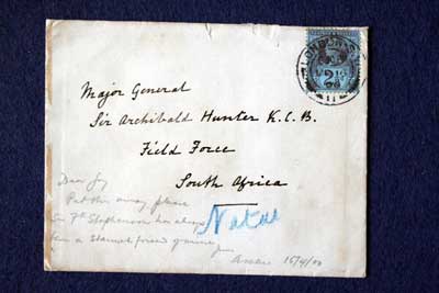 Archive of General Sir Archibald Hunter GCB GCVO DSO TD LLD at the King's Own Royal Regiment Museum, Lancaster. Envelope Envelope addressed to Major General Hunter, Field Force,