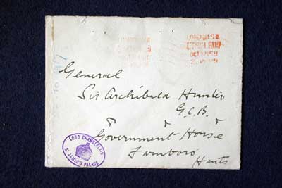 Archive of General Sir Archibald Hunter GCB GCVO DSO TD LLD at the King's Own Royal Regiment Museum, Lancaster. Envelope Envelope addressed to General Hunter, Government House,