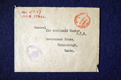 Archive of General Sir Archibald Hunter GCB GCVO DSO TD LLD at the King's Own Royal Regiment Museum, Lancaster. Envelope Envelope addressed to General Hunter, Government House,