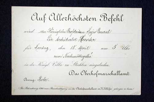 Archive of General Sir Archibald Hunter GCB GCVO DSO TD LLD at the King's Own Royal Regiment Museum, Lancaster. Invitation 15 Apr 1901 “Auf Allerhőchsten Befehl