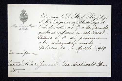 Archive of General Sir Archibald Hunter GCB GCVO DSO TD LLD at the King's Own Royal Regiment Museum, Lancaster. Invitation to [ ]30 Aug 1910 Accession Number: KO2686/205