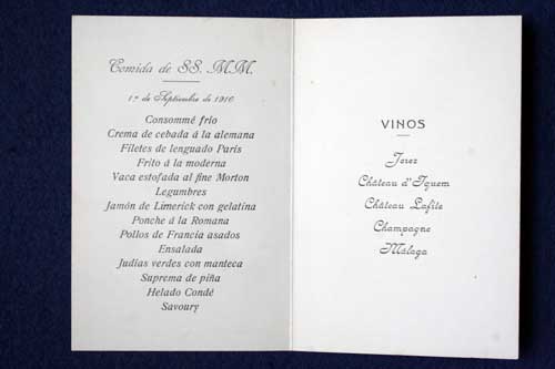 Archive of General Sir Archibald Hunter GCB GCVO DSO TD LLD at the King's Own Royal Regiment Museum, Lancaster. Menu for dinner 1 Sep 1910 Accession Number: KO2686/211