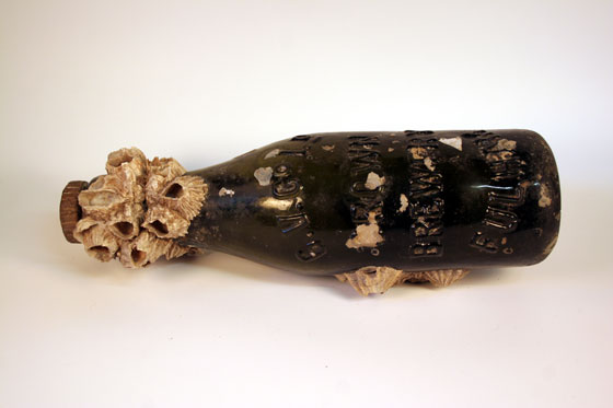 Collections - Souvenirs Message in a Bottle - 1914 "Well on the way to the front. Just seen the last of England. Mean to fight like Britons. Hope to see Leicester square again shortly. From the boys of the King's Own (R.L.R.), Dover, SS Saturnia. 22nd August 1914" On 22nd August 1914 when soldiers of the 1st Battalion of the King's Own Royal Lancaster Regiment crossed the English Channel on the way to France, on board the SS Saturnia, one of them wrote a message to the Editor of the Daily Mirror Newspaper. The pencil written message was carefully place in a Fulham Brewery beer bottle and thrown overboard. On 6th March 1922 the Grimsby trawler 'Egret' skippered by Mr E Dunn picked up the bottle, and found the message, which was then forwarded, we believe, to the Editor of the Daily Mirror. In turn the bottle was forwarded to the 1st Battalion of the Regiment who donated it to the Regimental Museum in Lancaster.