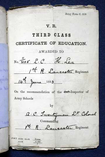 Corporal F Lee, number 10407, King’s Own served from Feb 1911 with