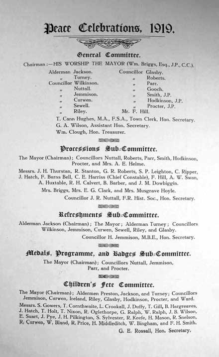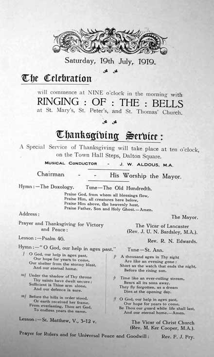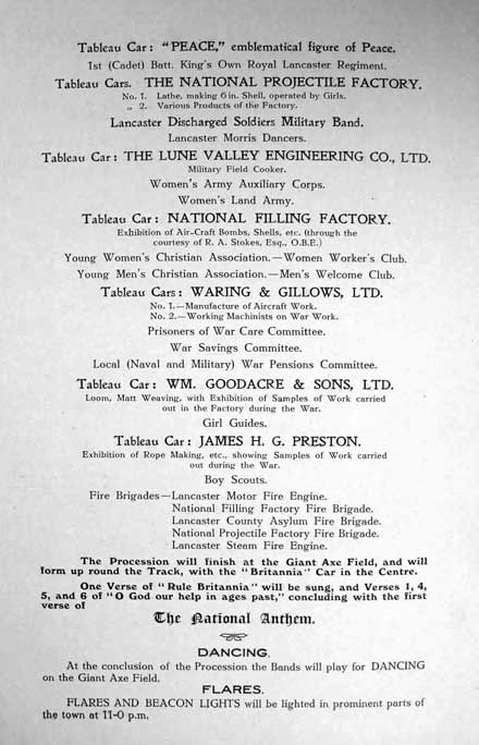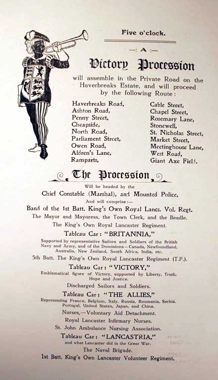 Collections - First World War Borough of Lancaster Peace Celebrations July 1919 Also see photographs of the Peace Celebrations