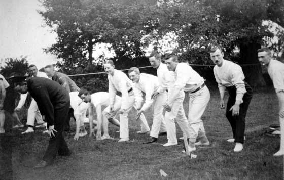 Regimental Sports, Colchester, 1908. Start for the Sergeants