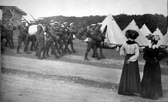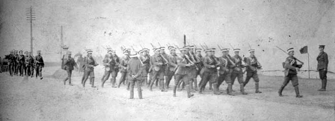 Brighton Manoeuvres, 1906. B Company returning to Camp after a