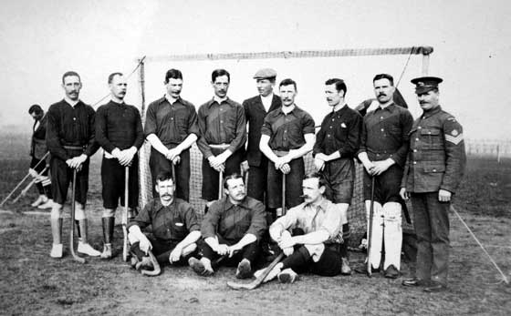 Hockey, 1906, Officers V Sergeants. Lieutenant Thornycroft, Fitzgerald, Bois, Birley, Finch, Harrison,
