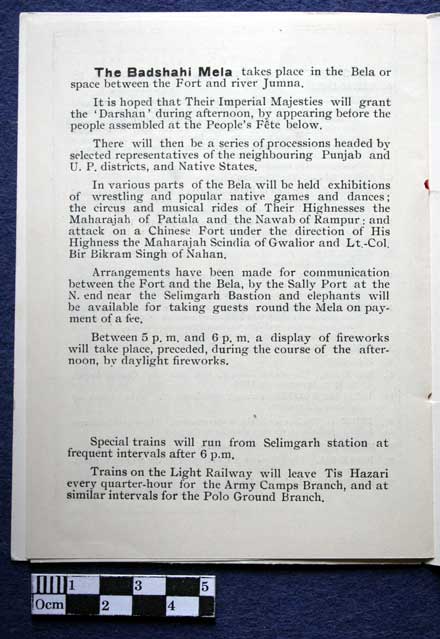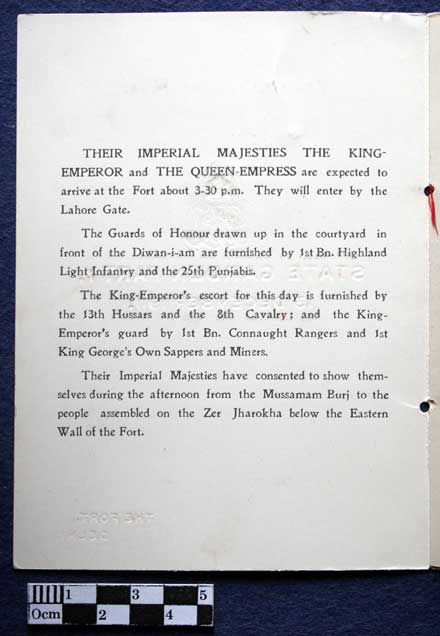 Collections - Archives Programme for the State Garden Party, The Fort Delhi, Delhi Durbar, 13th December 1911.