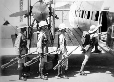 Photo Gallery Use of Aeroplanes by the 1st Battalion, Egypt, June 1933 In June 1933 this series of photographs was taken of the 1st Battalion training with aircraft in Egypt. Air transport was ruled out, at the time, as an impractical way of moving troops. The limited capacity of the aircraft, with only a handful of troops being accommodated at anyone time, meant that troops would continue to be moved by ship.