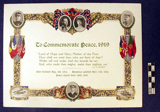 Collections - Archives Certificate to Commemorate Peace, 1919