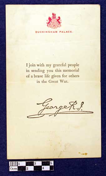 Letter with Memorial Plaque to Private William Waters