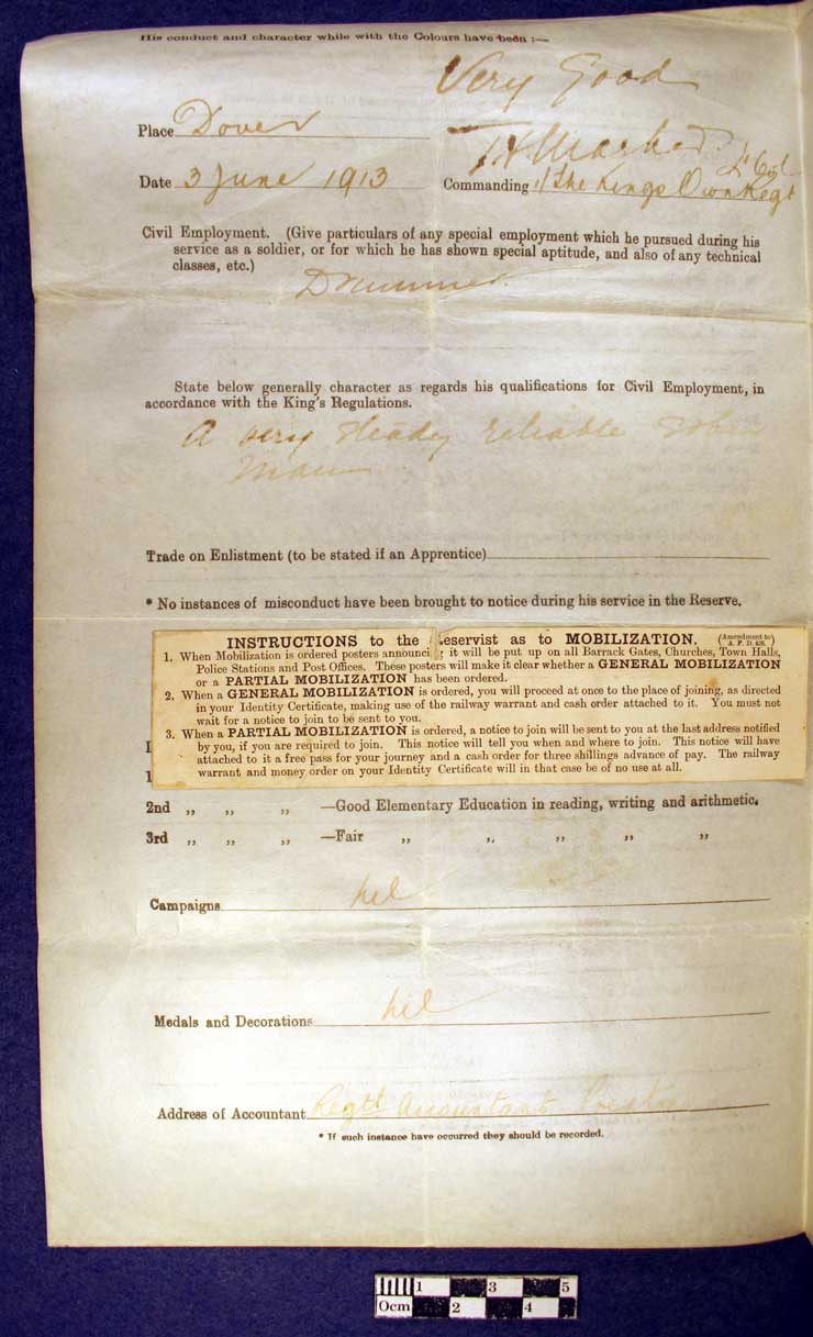 8593, 1st Battalion, King’s Own Royal Lancaster Regiment. Attested 16
