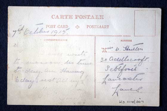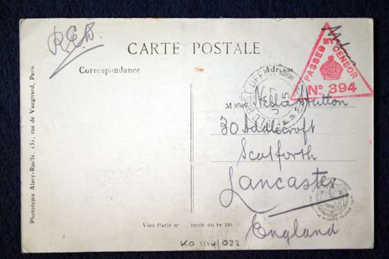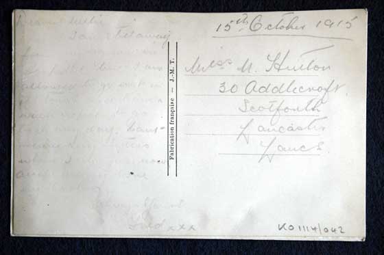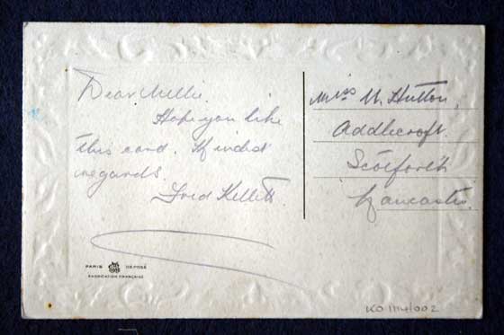 From Sergeant Fred Kellett to Miss Nellie Hutton.