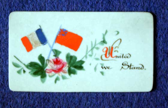 Silk postcard ‘Hope and Love’ French and Union flags.