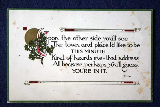 Postcard ‘Unitie Sincere’ with clover and flowers painted.