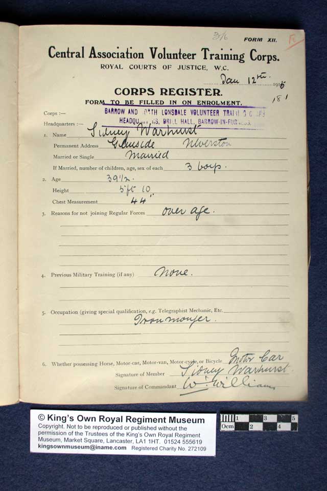 Collections - First World War - Volunteer Battalions Register of members of the Barrow and North Lonsdale Volunteer Training Corps Pages 16 to 20