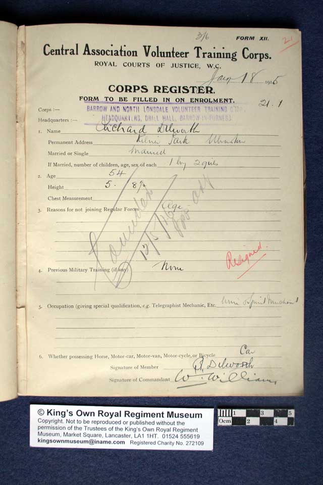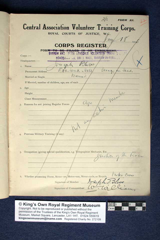 Collections - First World War - Volunteer Battalions Register of members of the Barrow and North Lonsdale Volunteer Training Corps Pages 21 to 25