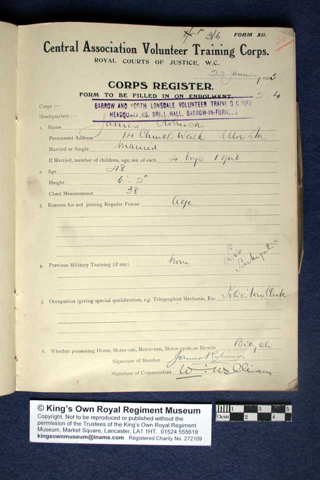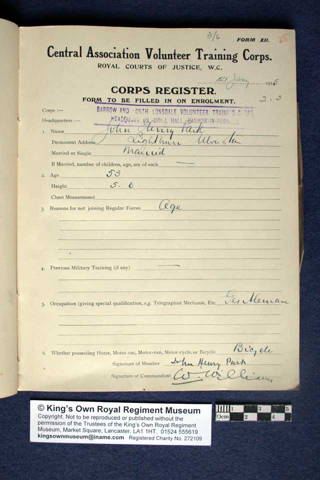 Collections - First World War - Volunteer Battalions Register of members of the Barrow and North Lonsdale Volunteer Training Corps Pages 26 to 30