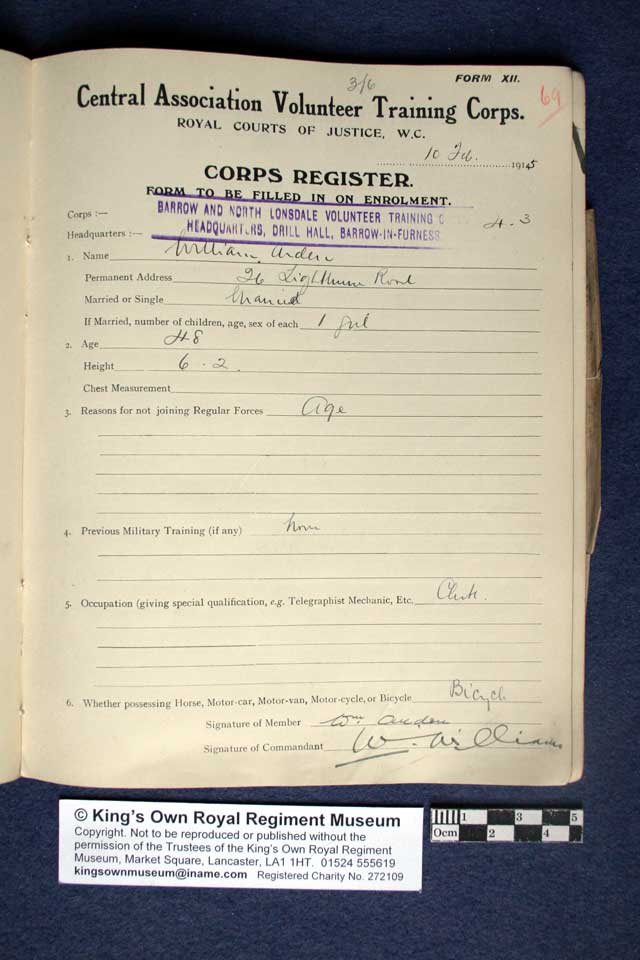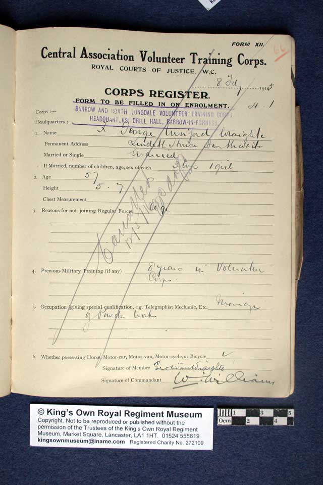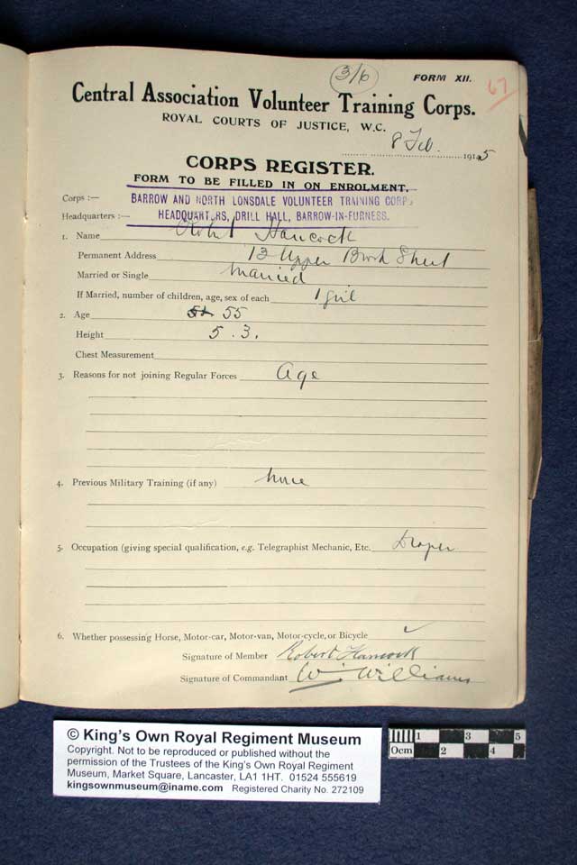 Collections - First World War - Volunteer Battalions Register of members of the Barrow and North Lonsdale Volunteer Training Corps Pages 66 to 70